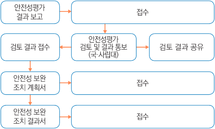 • 위임범위 : 안전성평가 결과 접수, 검토 결과 통보, 안전성 보완 조치 계획서 및 보완 조치 결과서 접수